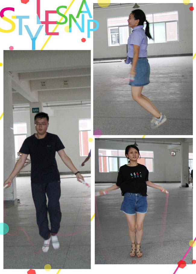跳繩比賽與乒乓球比賽同時進行,部分員工積極地報名了兩個比賽項目。