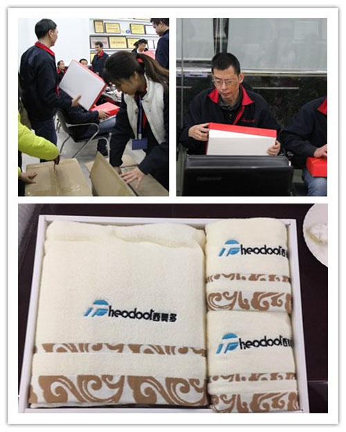 每位壽星都收到公司贈送的一份生日禮物——浴巾三件套。摸上去很柔軟,“暖暖的,很貼心”。在此刻嚴寒的季節(jié),這份禮物實用、溫暖、舒適。