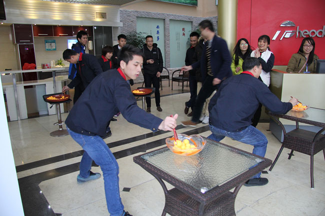 兩人組合,促進同事間的默契。最終外貿(mào)部的帥哥組合、國內(nèi)銷售和研發(fā)部的強強組合都分別以高分勝出,贏得獎品。