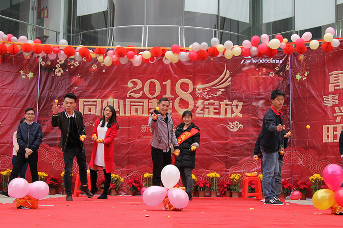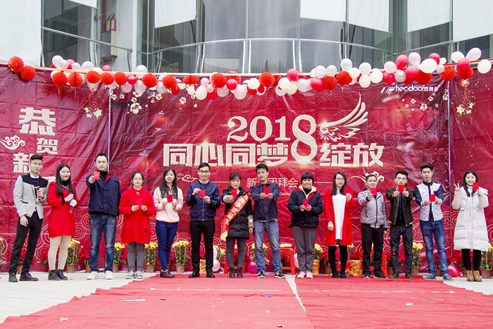現場張燈結彩、喜氣洋洋,全體員工共同出席“同心同夢,綻放2018”新春年會,與快樂相約,新年旺得福Wonderful!
