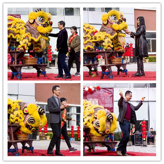 領導為瑞獅點睛,被喚醒的獅子生龍活虎。獅子采青,領導接“青”接福,預祝西奧多在新的一年財源廣進、節(jié)節(jié)高升。