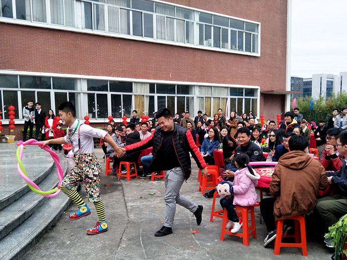 可愛爆棚的小丑表演,大家好像回到單純快樂的童年時光。童心美好,連美女主持都想客串一下小丑表演。