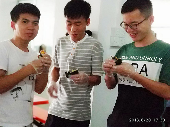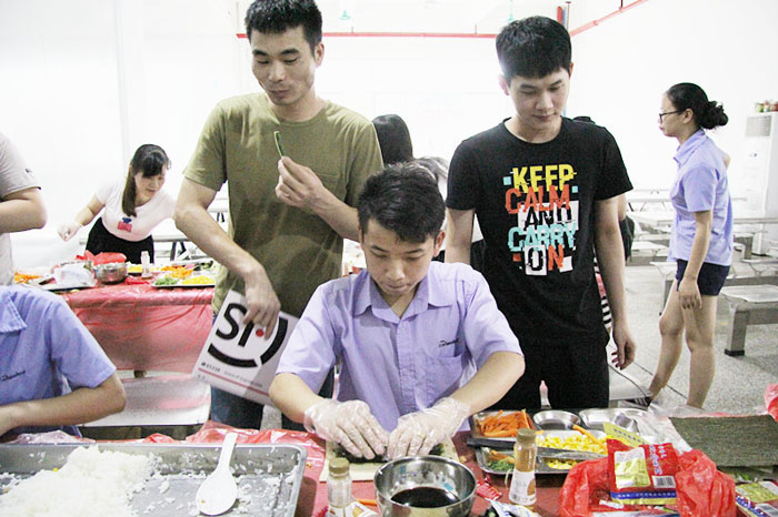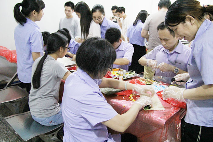 你的壽司你做主,口味自由配,品質(zhì)部、技術(shù)部等部門的同事紛紛體驗(yàn)壽司DIY的樂(lè)趣。